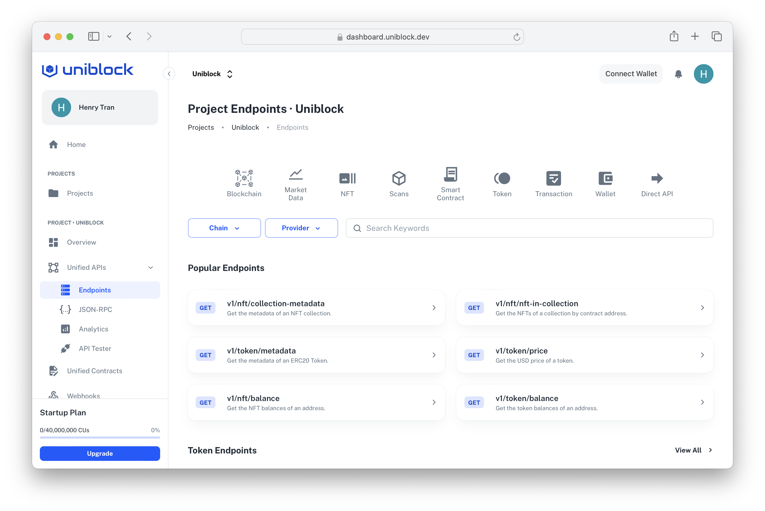 These endpoints facilitate the deployment, interaction, and querying of smart contracts on supported blockchains. Users can create, execute, and manage smart contracts, as well as fetch contract state and logs. Learn more about these endpoints on our Unified Contracts page.Token API Endpoints: