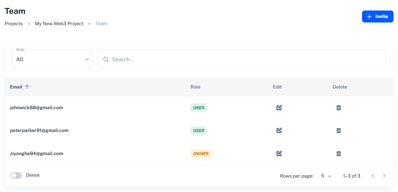 Through our user interface easily manage your project’s team members, assign them roles, and control their access to the project. This allows for easy collaboration and role-based management of your project.
