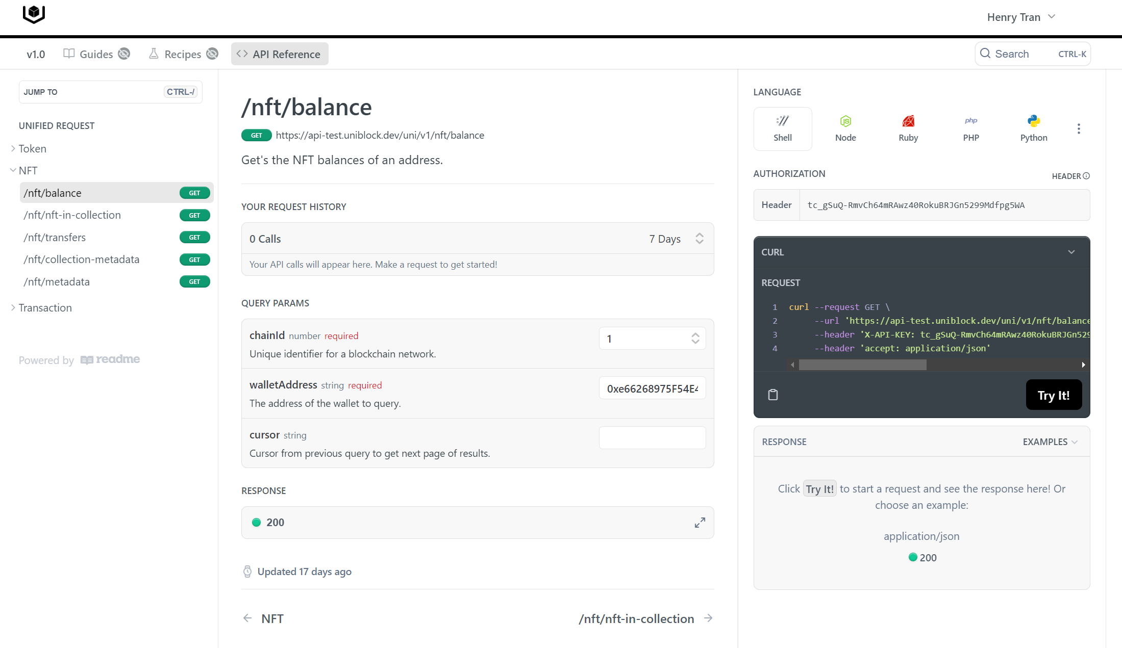 - Start Calling Your Endpoints: With your API key authenticated, you’re ready to start making requests to the Uniblock API.